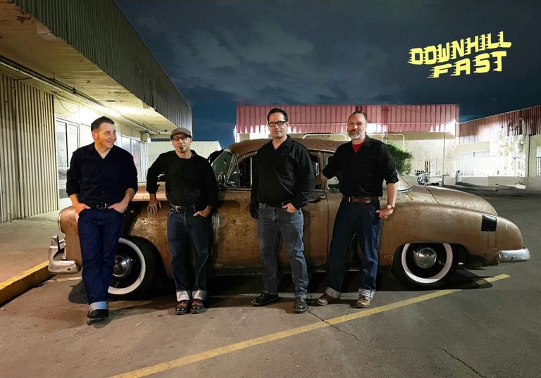 Downhill Fast is an Arizona based Race Ready Rockabilly band made up of musical veterans, whose history includes, The Keltic Cowboys, The Markdowns, Plowed Under, The Shadowcasters, and the legendary rockabilly band Exit 56. Downhill Fast was the brainchild of drummer Jay Ward and guitarist Ben Cox who quickly identified multi instrumentalist Rich Merriman to take control of the low end on bass and coaxed Rodd Mas to assume the vocal and rhythm guitar responsibilities. Concentrating on upbeat originals, Downhill Fast instantly became a mainstay in the rockabilly and car club scene and are now establishing a national and international presence as a must see experience.