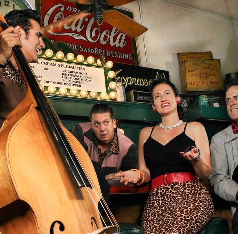 We are a Rockabilly group based in sunny Phoenix, Arizona featuring vocalist Christie aka Peep, Doc Screamer slappin upright bass, Mark Flynn on drumbeats, guitar whisperer Pat Roberts. Performing 50's Chart Toppers with a splash of Shim, Sham Shim